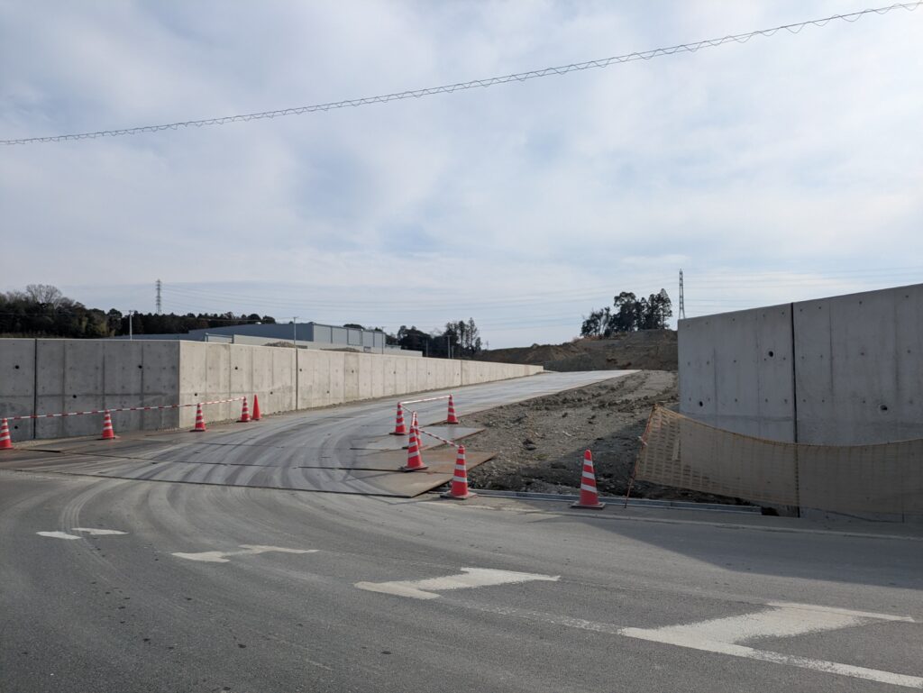土地の境界付近では擁壁工事も行われており、当面は造成工事が続く見込みです。そのため、建物の建築が始まるまでには、まだ時間がかかりそうです。
